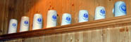 handgedrehte Krüge, teils kammgeschert. Das Eichmaß befindet sich vorn.