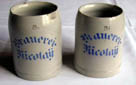 handgedrehte Krüge, gestempelte oder aufgelegte (erhabene) Aufschrift,