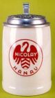 maschinell gefertigte Krüge, leicht aufgelegte oder einfach bedruckte