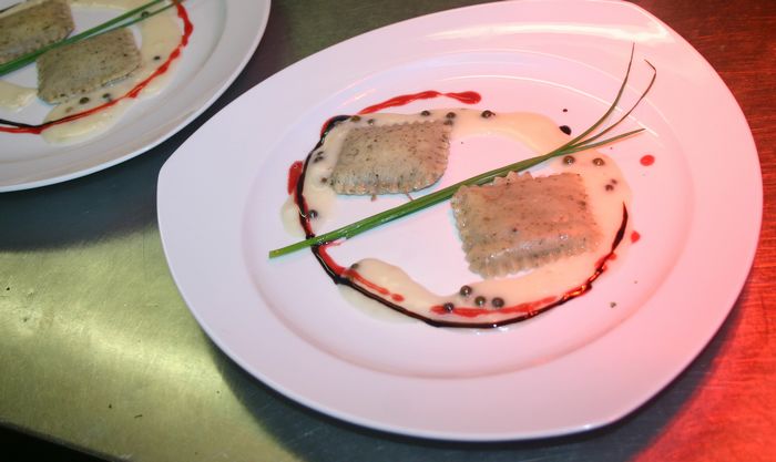 Hausgemachte Ravioli mit Blutwurstfüllung